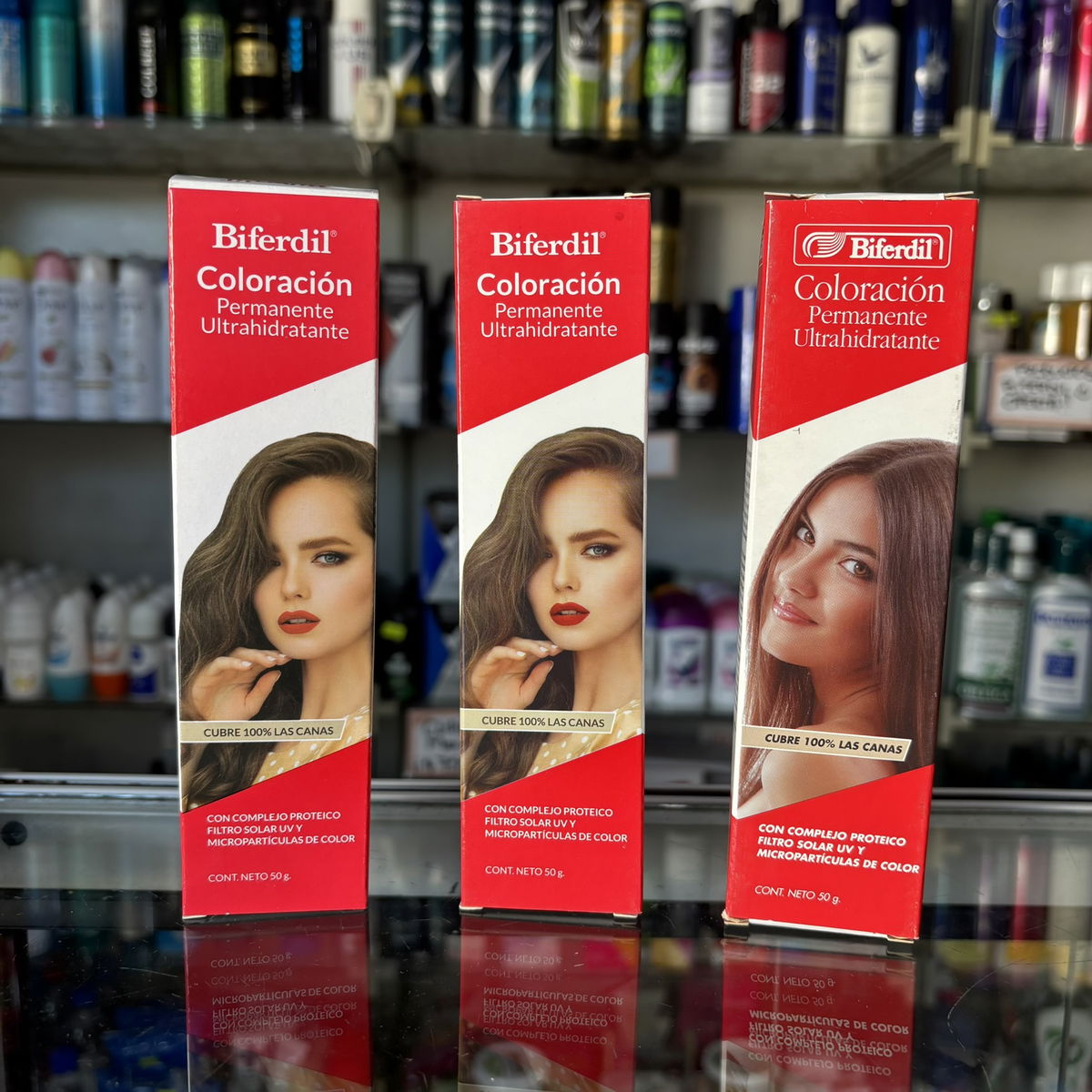 La tintura Biferdil en pomo (50 grs) es una coloración permanente ultrahidratante que ofrece alta cobertura de canas, brillo y suavidad gracias a su complejo proteico y filtro solar UV. Se mezcla con agua oxigenada (75 ml) y permite lograr colores intensos, duraderos y un cuidado profundo de la fibra capilar durante el proceso
