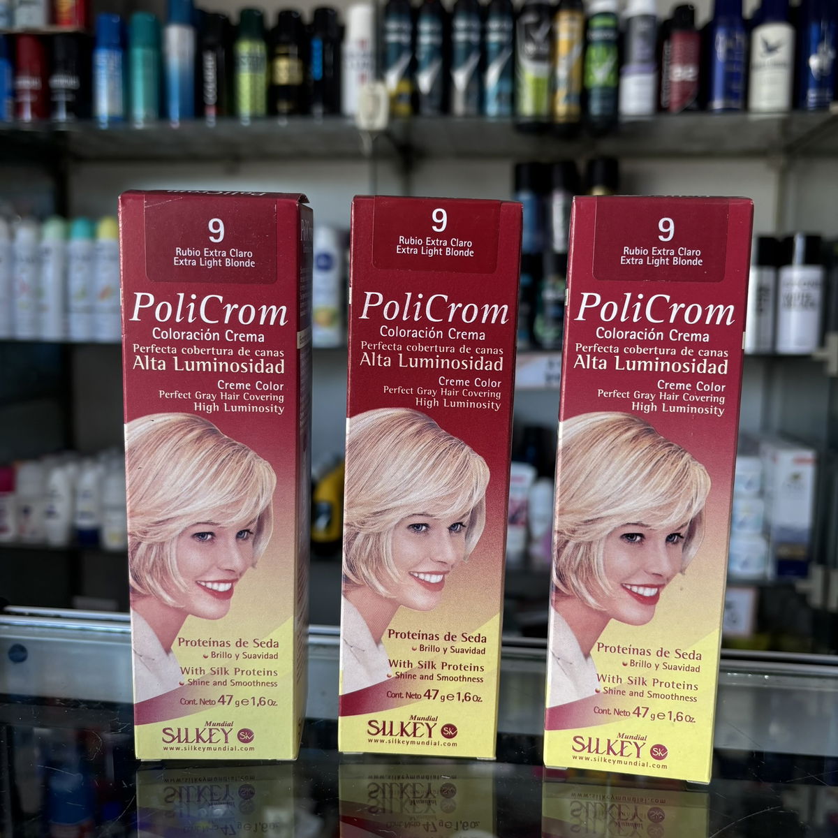 Silkey Policrom es una coloración permanente en crema, desarrollada para lograr colores intensos, brillantes y de alta luminosidad. Su fórmula enriquecida con proteínas de seda brinda suavidad de raíz a puntas, asegurando una cobertura perfecta de canas y un acabado duradero. Disponible en una amplia gama de tonos, permite resultados profesionales desde casa. Presentación: pomo de 47 gramos.